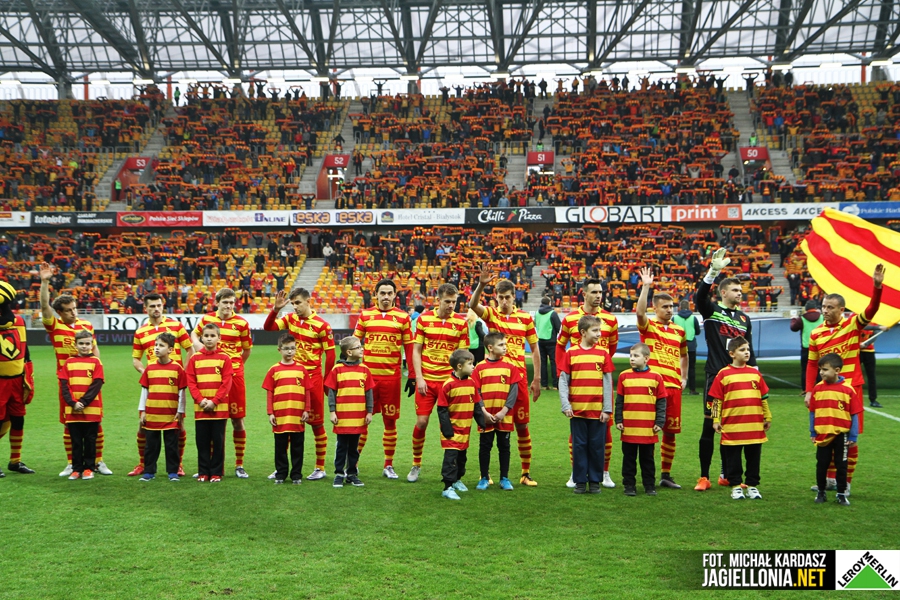 Pierwsza połowa przypominała tą z meczu przeciwko Pogoni. Dużo podań, więcej czasu przy piłce po stronie Jagi. Worek z bramkami wydawał się rozwiązać po kilkunastu minutach. Pierwszą groźną sytuację i jedyny celny strzał w pierwszej połowie oddała jednak Łęczna. W 6 minucie z dystansu uderzał Pitry, a świetną interwencją popisał się Drążek. Co jeszcze warto zanotować z pierwszej połowy? Kilka klepek w wykonaniu Jagiellonii, żółtą kartkę Gutiego i ewidentny rzut karny na Tarasovsie w 23 minucie. Nie jest to pierwszy raz, gdy sędziowie w Ekstraklasie popełniają tak żenujące błędy i warto wziąć to pod uwagę przy ewentualnych nominacjach i degradacji arbitrów chyba, że nie ma niżej nikogo o wyższych umiejętnościach.