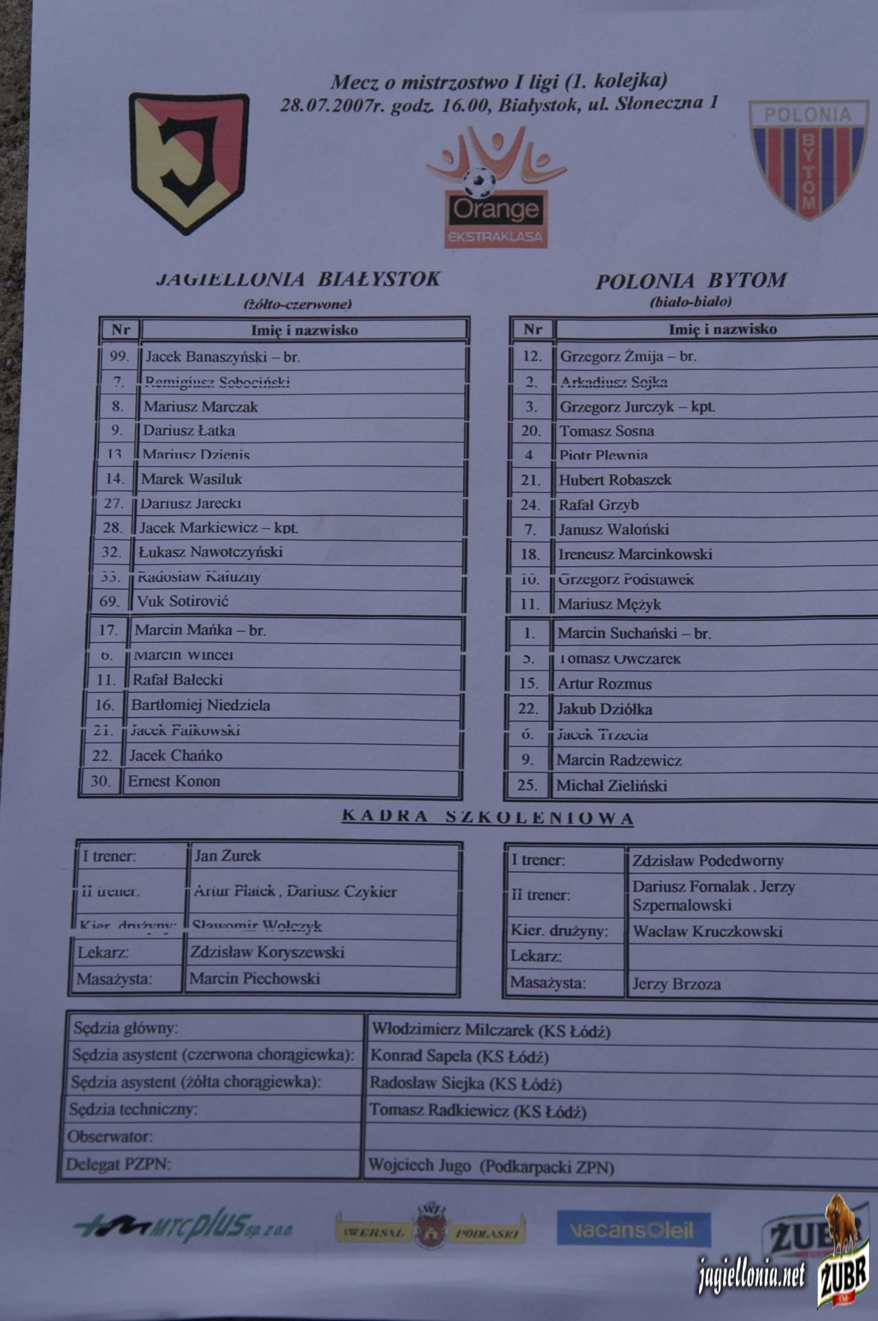 Mecze - Jesień » 2007-07-28 Jagiellonia Białystok 2-1 Polonia Bytom