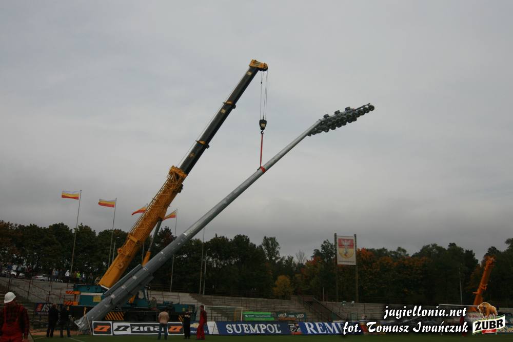 Sztuczne oświetlenie i remont łuku "pod zegarem" » 2007-09-28 Ustawianie pierwszego słupa