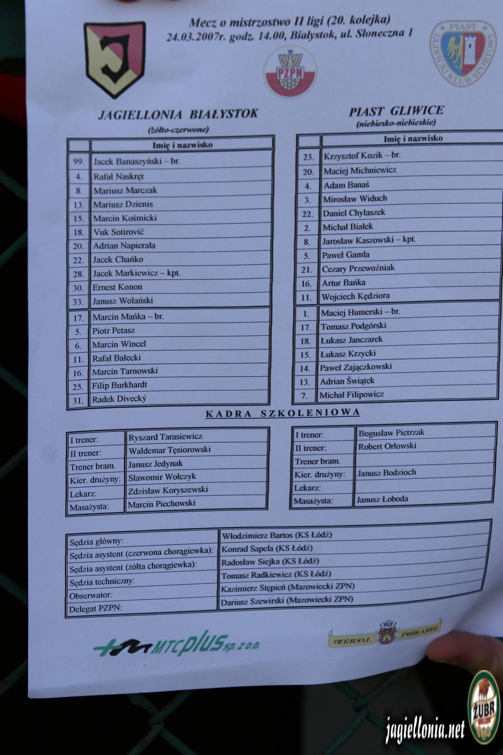 Mecze - Wiosna » 2007_03_24_Jagiellonia Białystok 1-1 Piast Gliwice