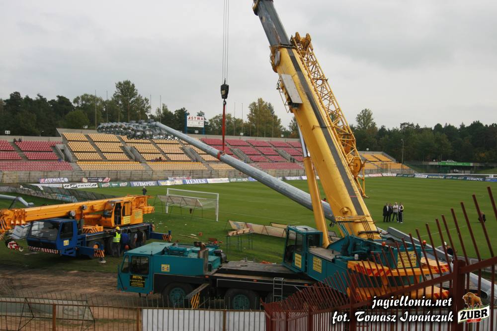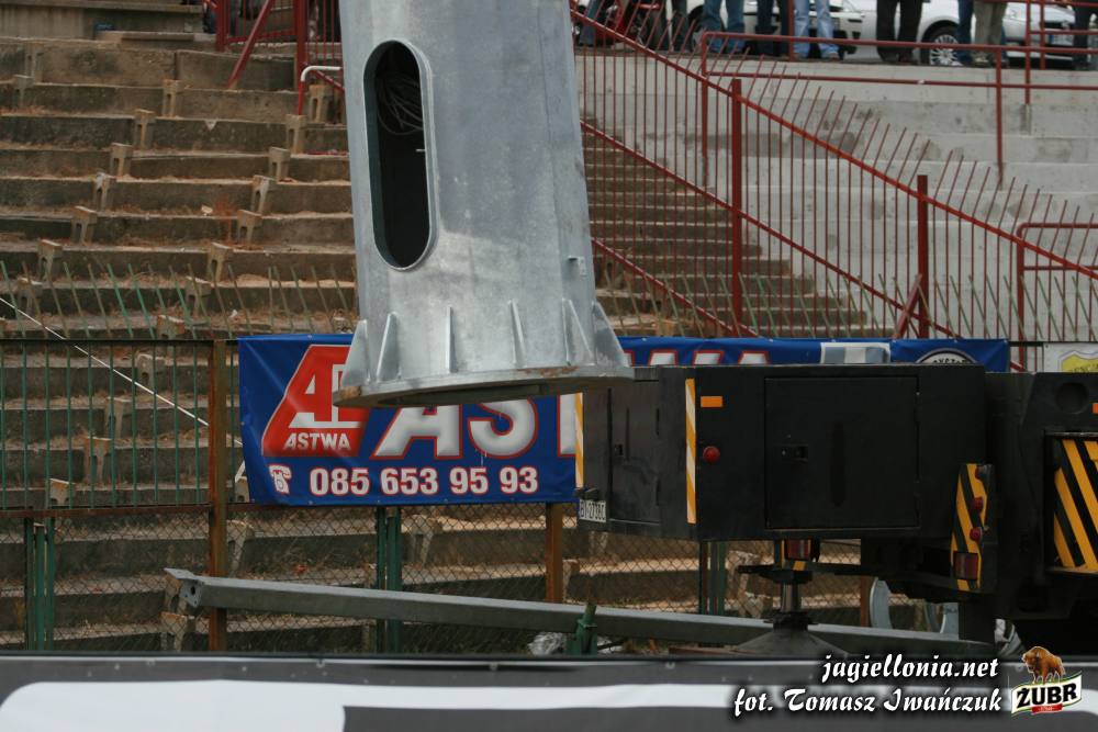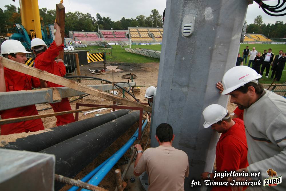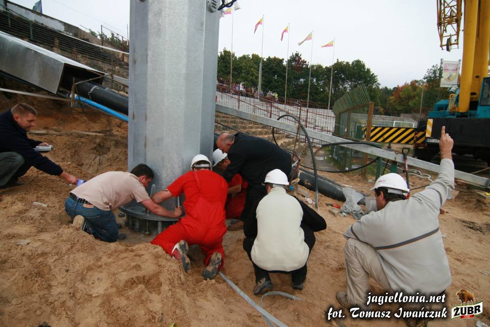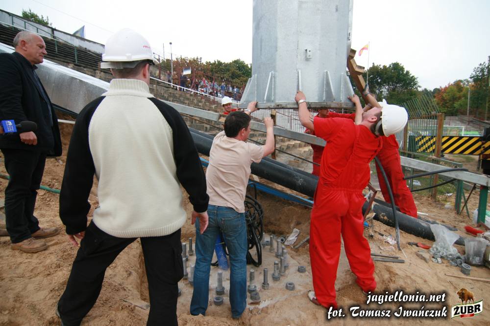 Sztuczne oświetlenie i remont łuku "pod zegarem" » 2007-09-28 Ustawianie pierwszego słupa