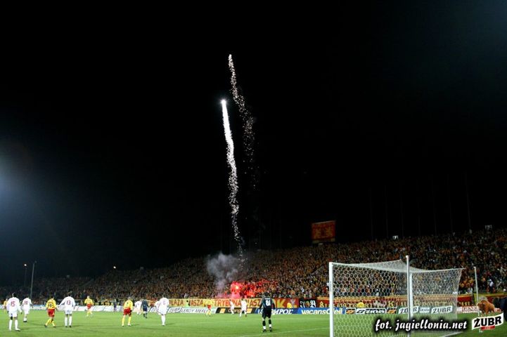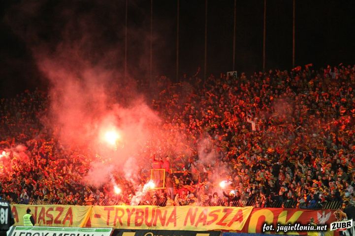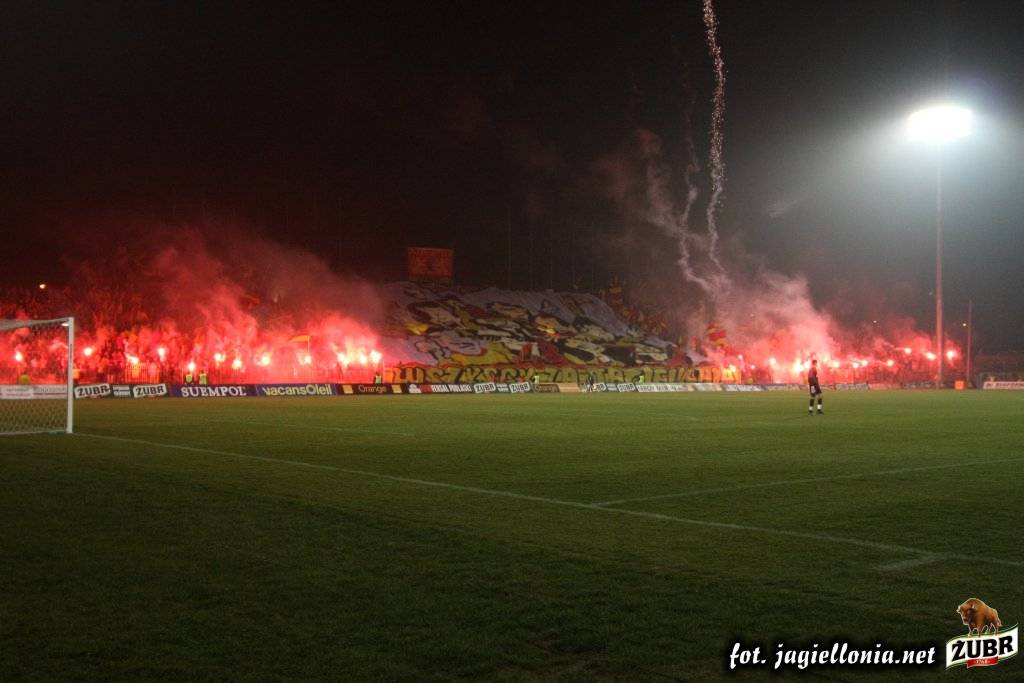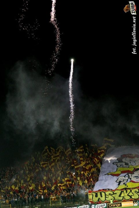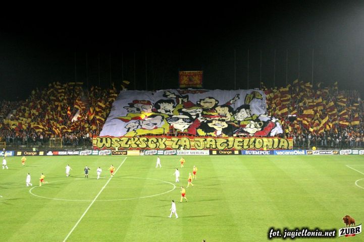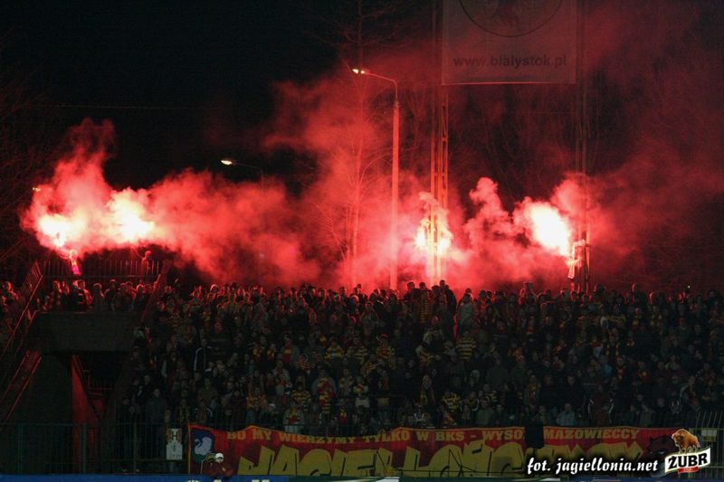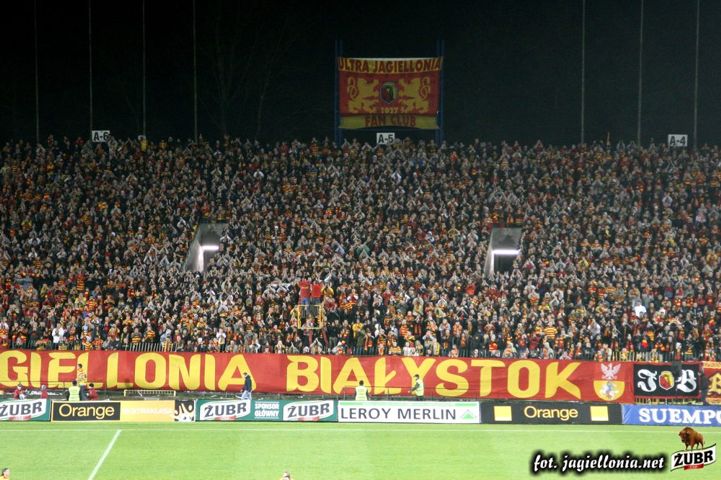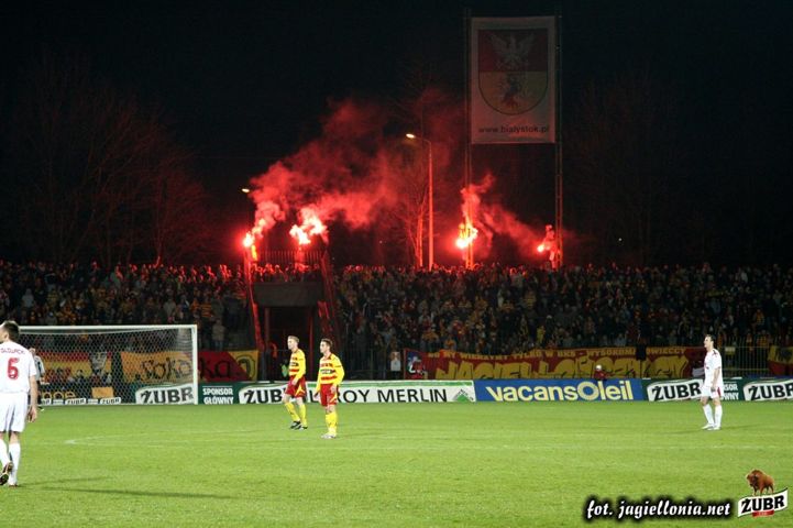 Jagiellonia Białystok - Wisła Kraków 1-2, 2008-04-12 wydarzenie historyczne » 2008-04-12 trybuny, Kibice, oprawa Jagiellonia-Wisła Kraków 1-2